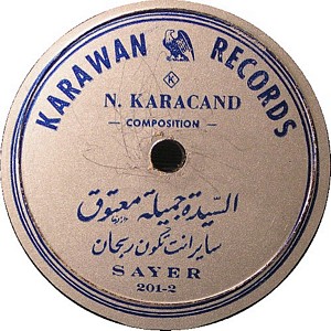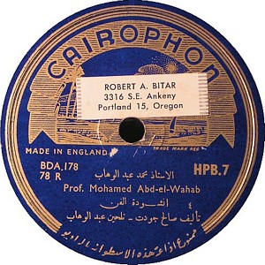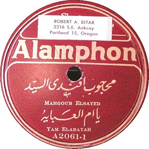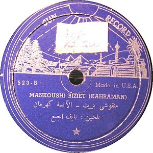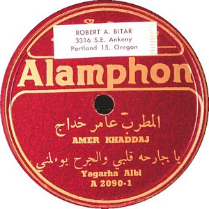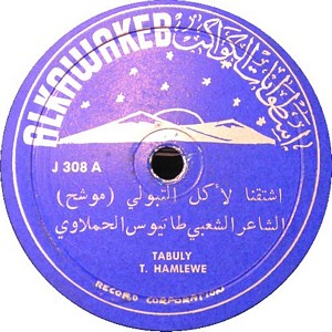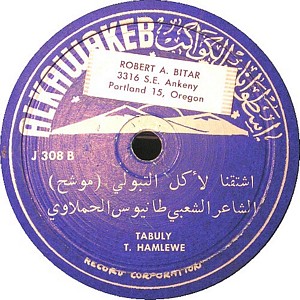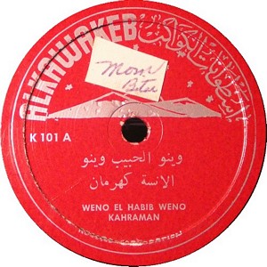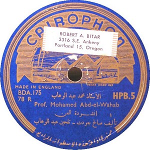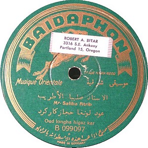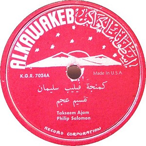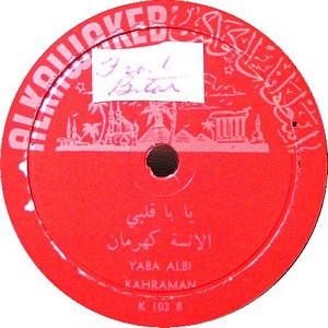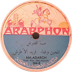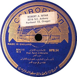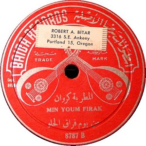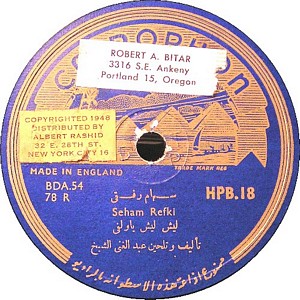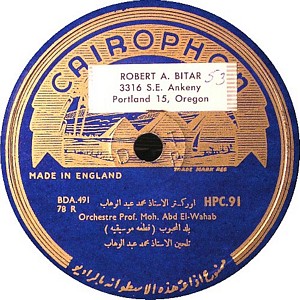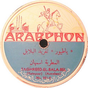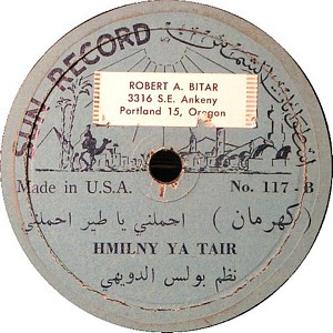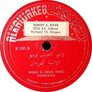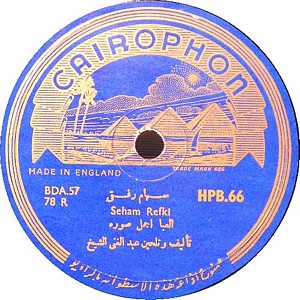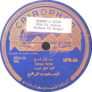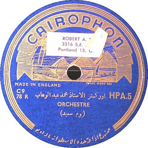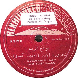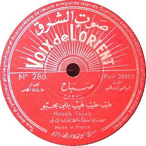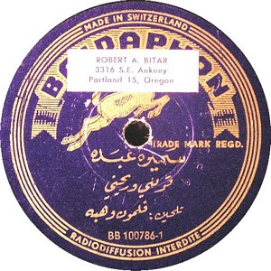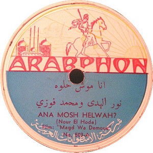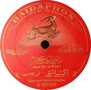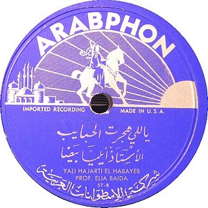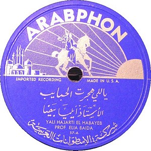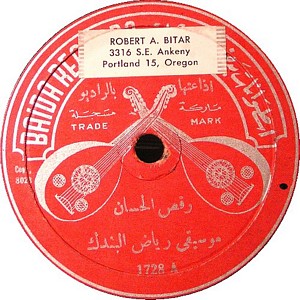 I recently acquired a group of over 50 old 78rpm records with 1930's-1950's Arabic Pop and Swing music. Below are photos of the old record labels and all the songs recorded in MP3 format. Just click on the label photo to download the song. The recordings are about 3MG each, so if you have a 56k modem like I do, it might take some time to listen to all the songs. If you want the complete collection of Arabic music from my archive, I can send you a CD with about 100 songs in MP3 format plus photos of all the old record labels.